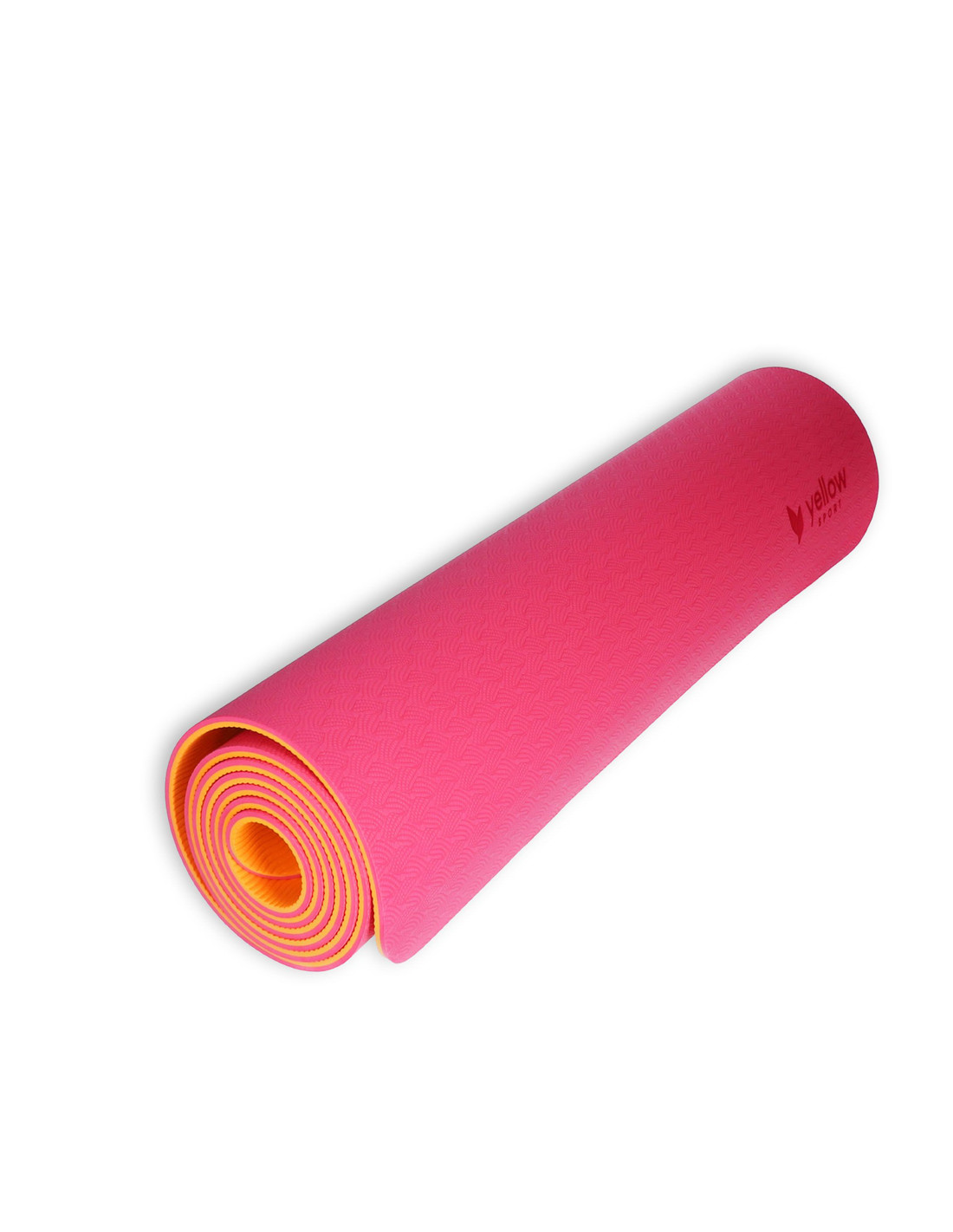 Mata do ćwiczeń rehabilitacyjnych, pilates, joga, antypoślizgowa yellowMAT TPE 183x61cm pomarańczowo-różowa