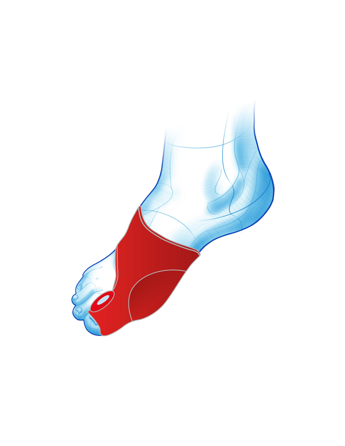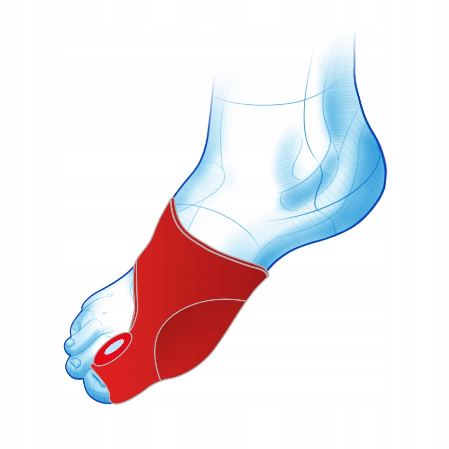 Elastyczna osłona na haluksa wykonana z cienkiej tkaniny i żelowej poduszczeki, która chroni bolesne zmiany w obrębie palucha przed otarciami, amortyzuje naciski przynosząc natychmiastową ulgę. Silikonowy klin separuje paluch od II palca.