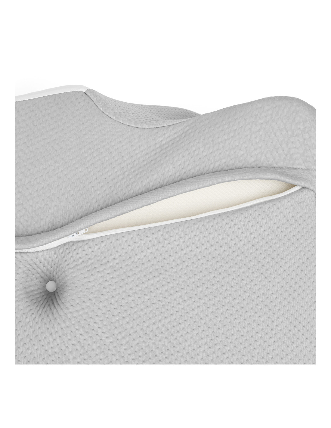 - Oddychająca poszewka z zamkiem – wykonana z przyjaznej dla skóry, wentylowanej tkaniny, którą łatwo zdjąć i wyprać.