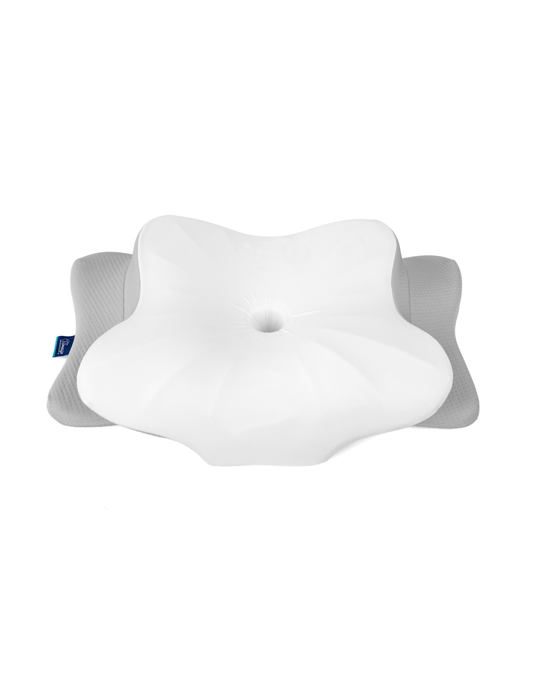 Specjalny, anatomiczny kształt umożliwia wygodne ułożenie głowy wraz z maską, nie powodując jej ucisku ani przesuwania się podczas snu.