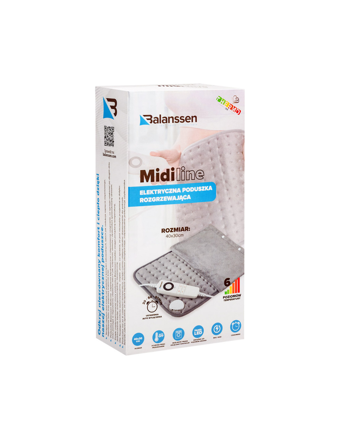 - Nowoczesny design i estetyka - elektryczna poduszka MidiLine nie tylko zapewnia skuteczną terapię cieplną, ale również doskonale wpisuje się w nowoczesne wnętrza dzięki stylowemu wyglądowi. Starannie zaprojektowane opakowanie i minimalistyczny design sprawiają, że produkt prezentuje się elegancko i profesjonalnie. Idealny wybór dla osób, które cenią sobie zarówno funkcjonalność, jak i estetykę.