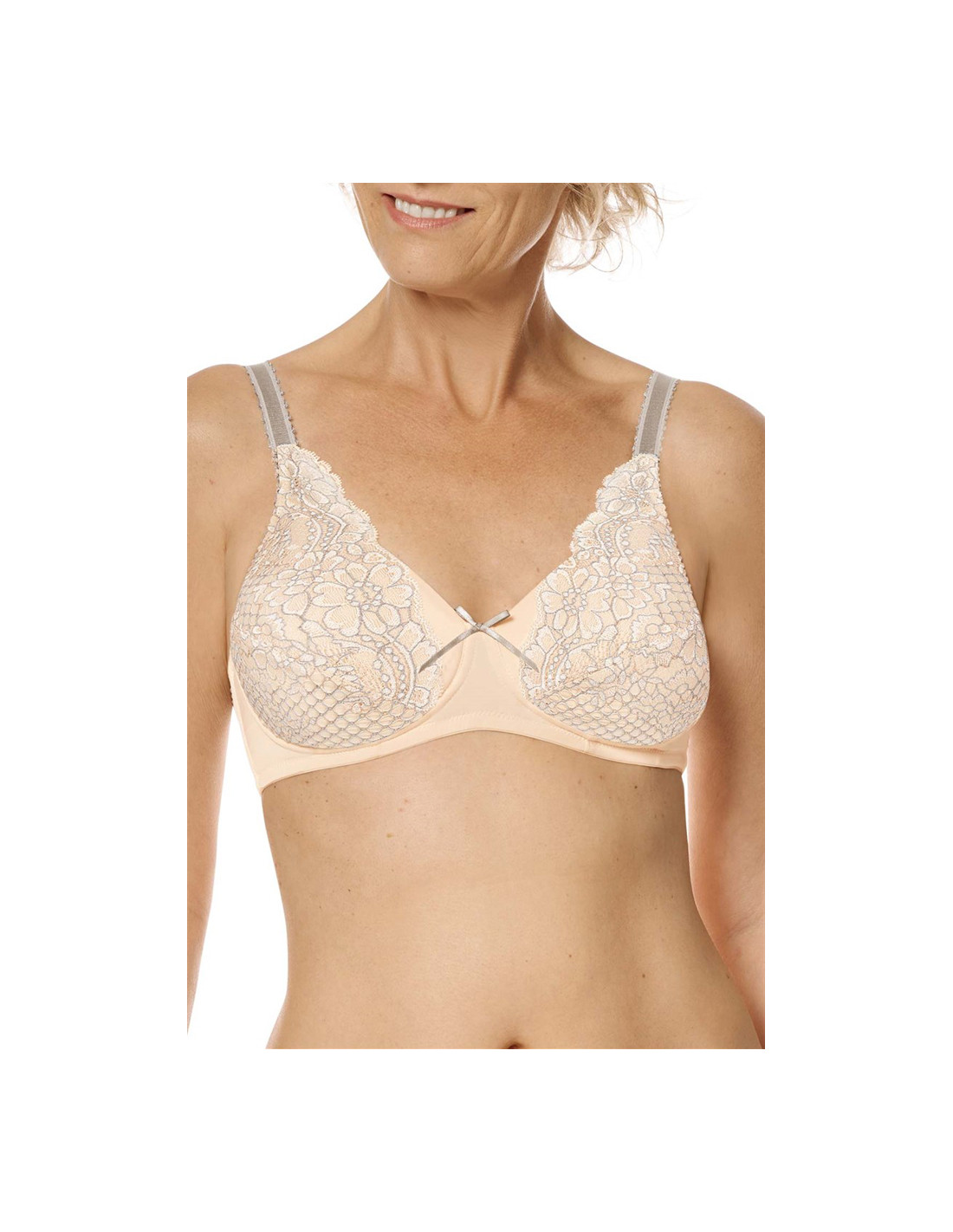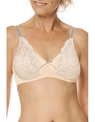 Biustonosz Alina SBP to profilowany model ma nieco delikatniej usztywniane miseczki i głębszy dekolt, który jednocześnie dyskretnie osłania blizny oraz miejsca po operacji.