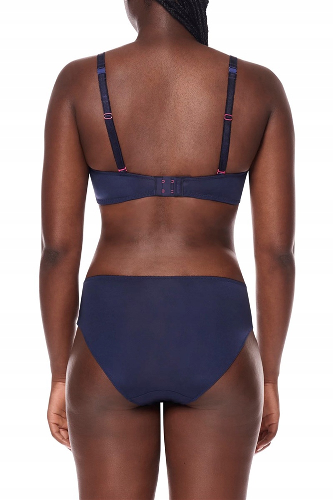 Usztywniany, miękki biustonosz z kwiatowym haftem w dolnej części miseczki na elastycznej siateczce tworzy piękny dekolt.