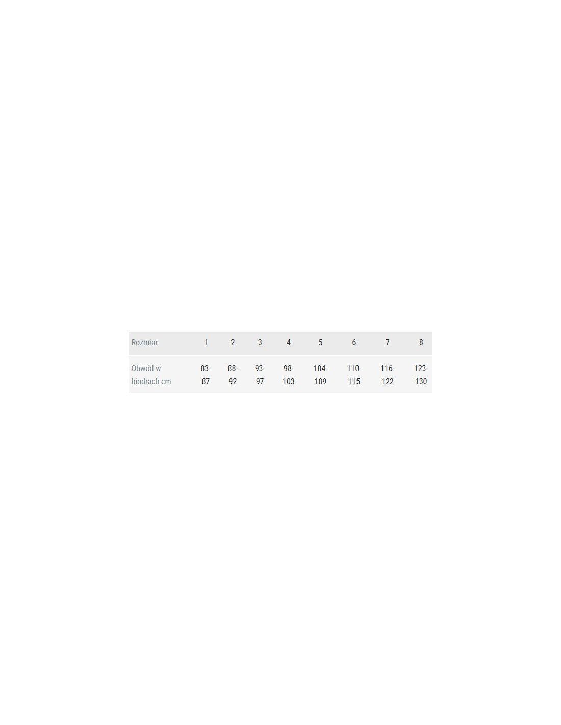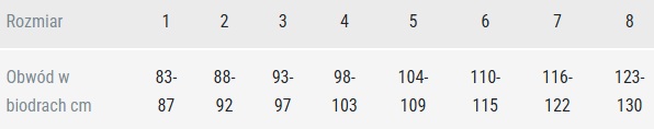 Rozmiar - obwód w biodrach w cm: