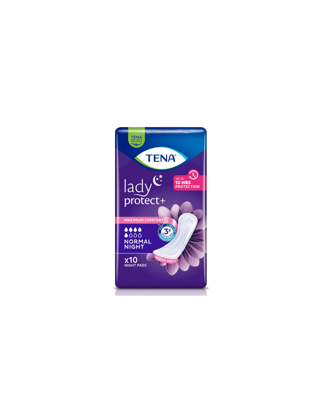 TENA Lady Protect+ Normal Night to podpaska na noc dla kobiet, do stosowania w przypadku nietrzymania moczu o średnim stopniu natężenia.