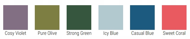 Kolory sezonowe 2026/2027: Cosy Violet, Pure Olive, Strong Green, Icy Blue, Casual Blue, Sweet Coral
